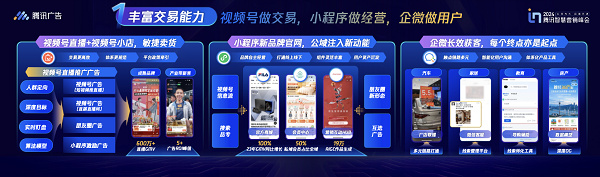 1. 豐富交易能力: 以視頻號(hào)、小程序、企業(yè)微信為核心錨點(diǎn),騰訊生態(tài)為商家伙伴構(gòu)建了三大交易陣地,無(wú)論是成熟品牌還是產(chǎn)業(yè)帶新客都能在此高效成交、長(zhǎng)效獲客。