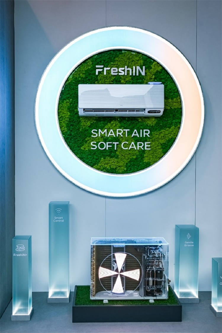 隨著大眾健康需求的不斷升級,TCL空調(diào)面向海外市場推出搭載行業(yè)首創(chuàng)可呼吸雙向換新風技術(shù)的FreshIN 2.0新風空調(diào)產(chǎn)品,其吸排組合方式大大提升新風換氣效率,60m3/h大新風量和30m3/h排風量真正實現(xiàn)了“空調(diào)會呼吸,空氣更清新”。此外,通過創(chuàng)新性將空調(diào)與Matter智能IoT互聯(lián)技術(shù)結(jié)合,TCL Matter窗機在北美亮相。該產(chǎn)品能接入更多IoT互聯(lián)生態(tài)系統(tǒng)(Google、Alexa、Home kits等其它第三方App),讓生活更加便捷、舒適、智能。同時,TCL實業(yè)還為北美用戶帶來了戶式機產(chǎn)品,該款產(chǎn)品采用環(huán)保冷媒R454B,SEER2值高達20,不僅節(jié)能高效,并且環(huán)??沙掷m(xù)?,F(xiàn)場還展示了新型創(chuàng)新綠色取暖方式R290三聯(lián)供熱泵,該產(chǎn)品具有低能耗、高能效、減少用戶能源消費等特點。
