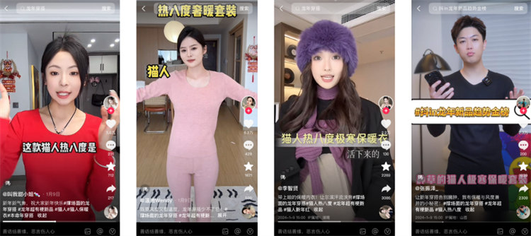 活動(dòng)期間,@溫迪Wendy、@叫我甜小姐、@張振澤_等多位達(dá)人為貓人沉浸式種草貓人新年紅FUN紅禮盒,為消費(fèi)者體驗(yàn)發(fā)熱德絨技術(shù)同樣厚度更保暖、8倍彈力柔軟親膚、立體剪裁更貼身等產(chǎn)品核心亮點(diǎn)。貓人合作達(dá)人視頻總曝光量超過1000萬,獲贊超過17萬。