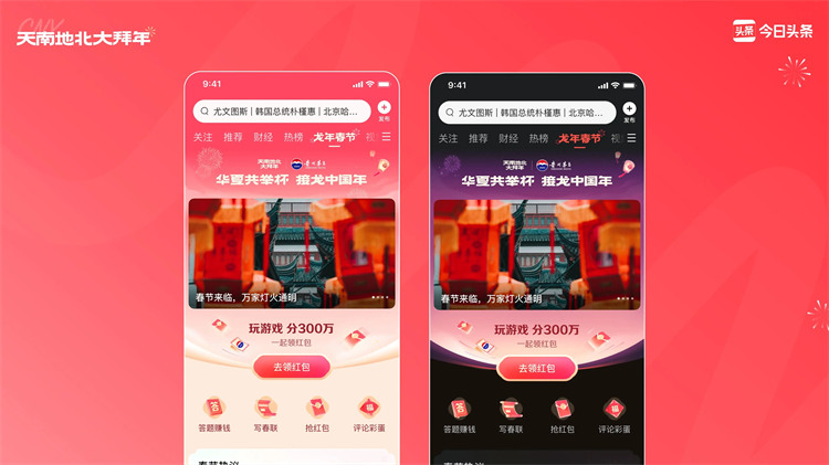不僅有一眾實力派明星送上專屬拜年寄語,海外達人作者齊聚頭條分享全球中國年,專業(yè)廚師掀起南北菜系年夜飯大比拼。各地區(qū)傳統(tǒng)特色民俗活動也輪番巡演,讓用戶感受濃厚的歷史底蘊和傳統(tǒng)風(fēng)情,帶領(lǐng)大家重拾“年味兒”。用戶能更加深入地了解和體驗各地傳統(tǒng)民俗,在分享與互動中度過一個充滿歡樂和溫馨的新春佳節(jié)。